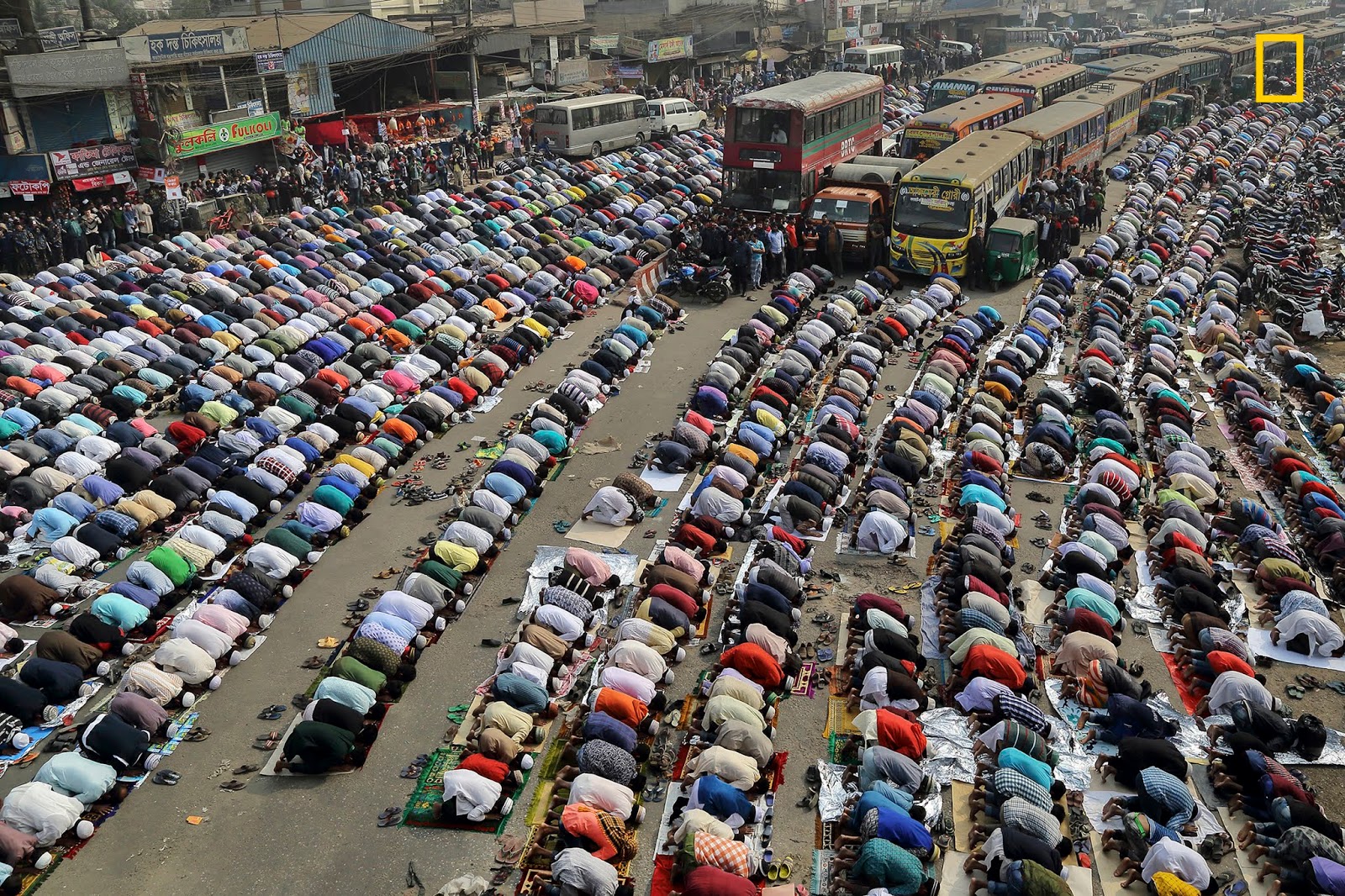 وفي المرتبة الثالثة في قسم المدن جاءت الصورة التالية للمصور Sandipani Chattopadhyay للمصلين في شوارع مدينة داكا في بنغلادش في صلاة الجمعة، حيث يؤدي ملايين المسلمين الصلاة.
